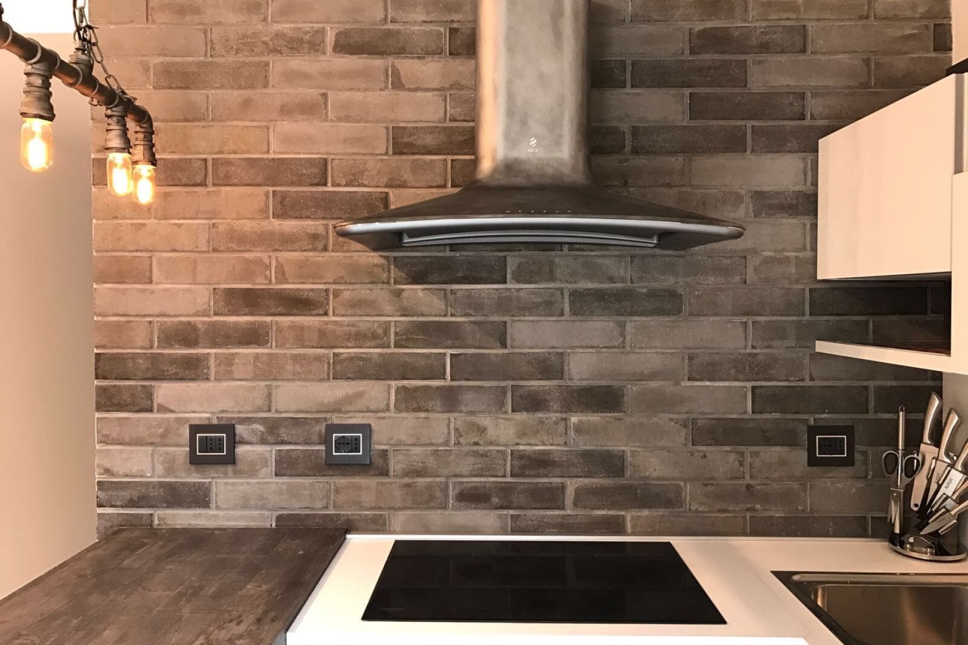 Di particolare effetto l’utilizzo delle maioliche sono di Marca Corona 1741, serie Brick Lane, colore Olive.